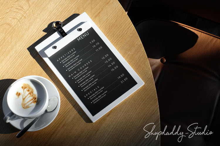 • You can choose the size of the menu board by selecting from the "Paper Menu Size" option (for 8.5x5.5 in paper menu size on the photos).