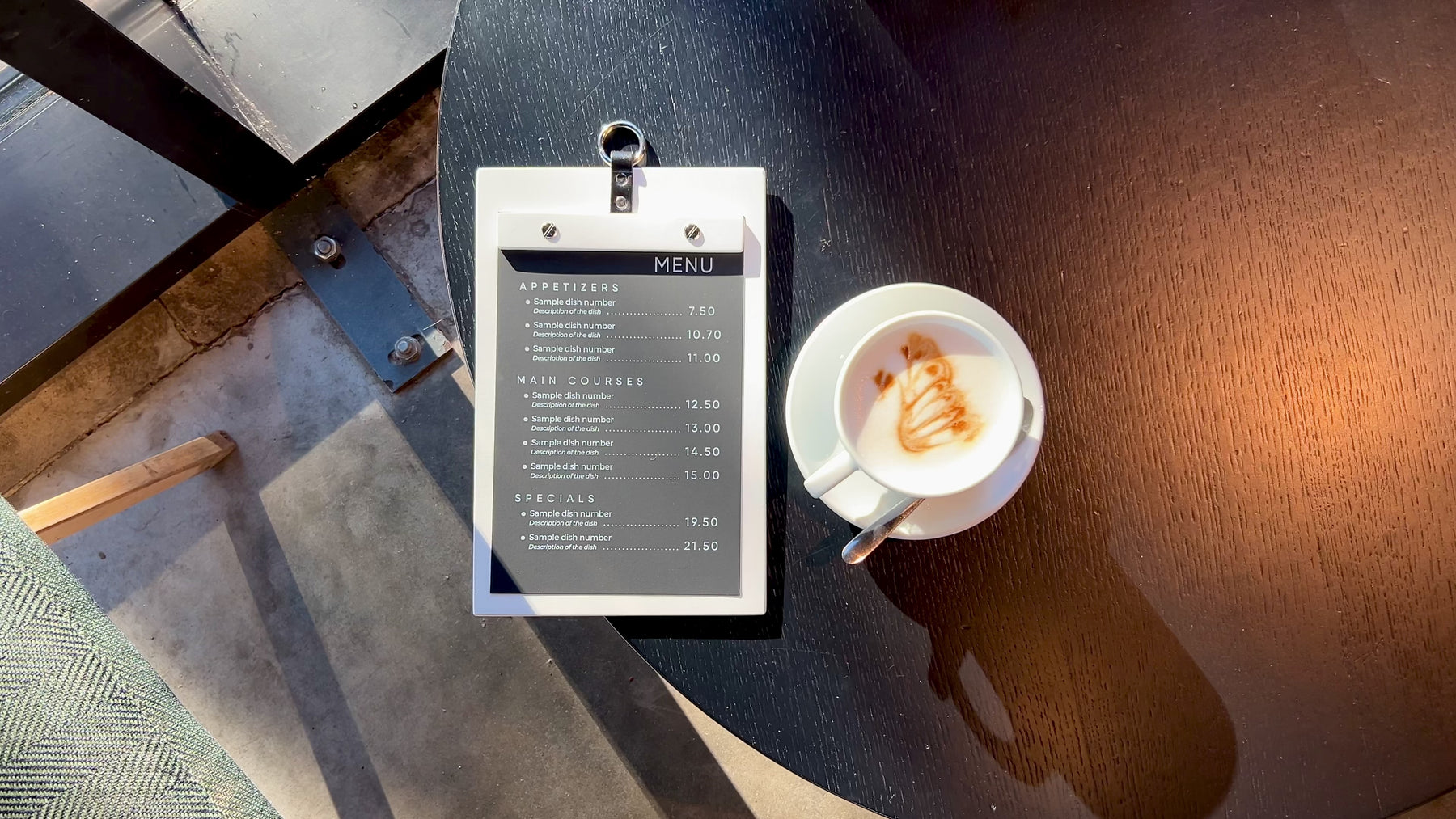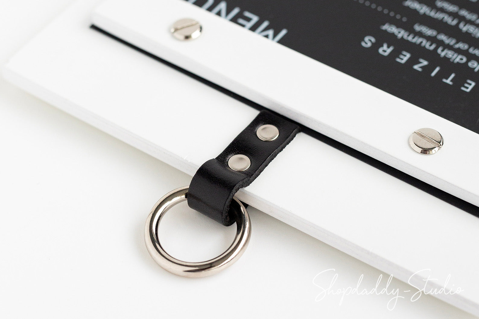 • The menu holder can be organized on a wall using the metal ring