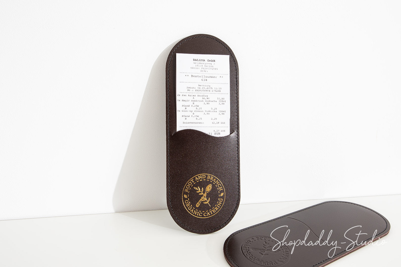 Add a touch of sophistication to your service with this elegant, minimalist check presenter. Handcrafted from full-grain leather, it offers a rich texture and premium feel. The server book is designed for everyday use because it is waterproof and easy to clean. Perfect for restaurants and cafes, it can be customized with your logo to give every bill a polished, branded look.
