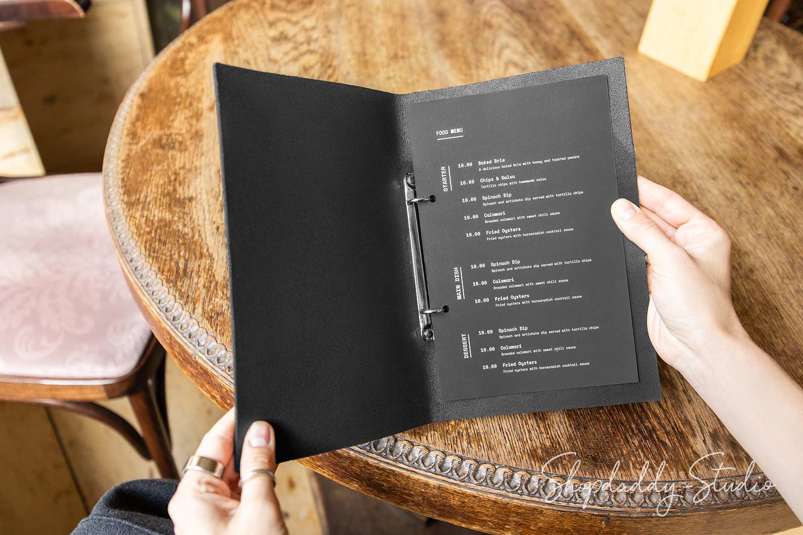 Present your menu elegantly using our Leather Menu Cover, which is ideal for restaurants, cafes, bars, and weddings. This custom menu book is Crafted from thick, natural, full-grain leather in a rich brown and combines durability with style. The ring binder keeps your menu pages securely in place, while the minimalist design seamlessly fits into any interior. Customize this menu folder with your logo or any desired details, making it perfect for drink, bar, wine, or special occasion menus.