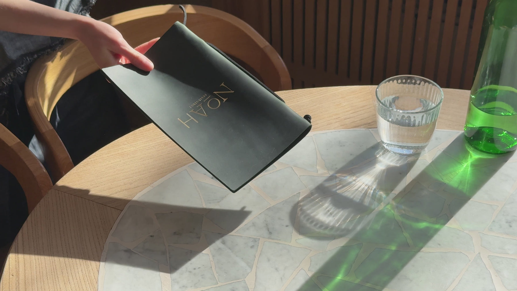 This custom menu cover adds an organic touch to modern minimalist bars and restaurants. Made from Crazy Horse leather, it brings a warm, textured look that creates a cozy and welcoming atmosphere. Elegant details such as leather lace binding and optional debossed logo, wording, or design give the menu holder a distinctive appearance and lasting visual appeal.
