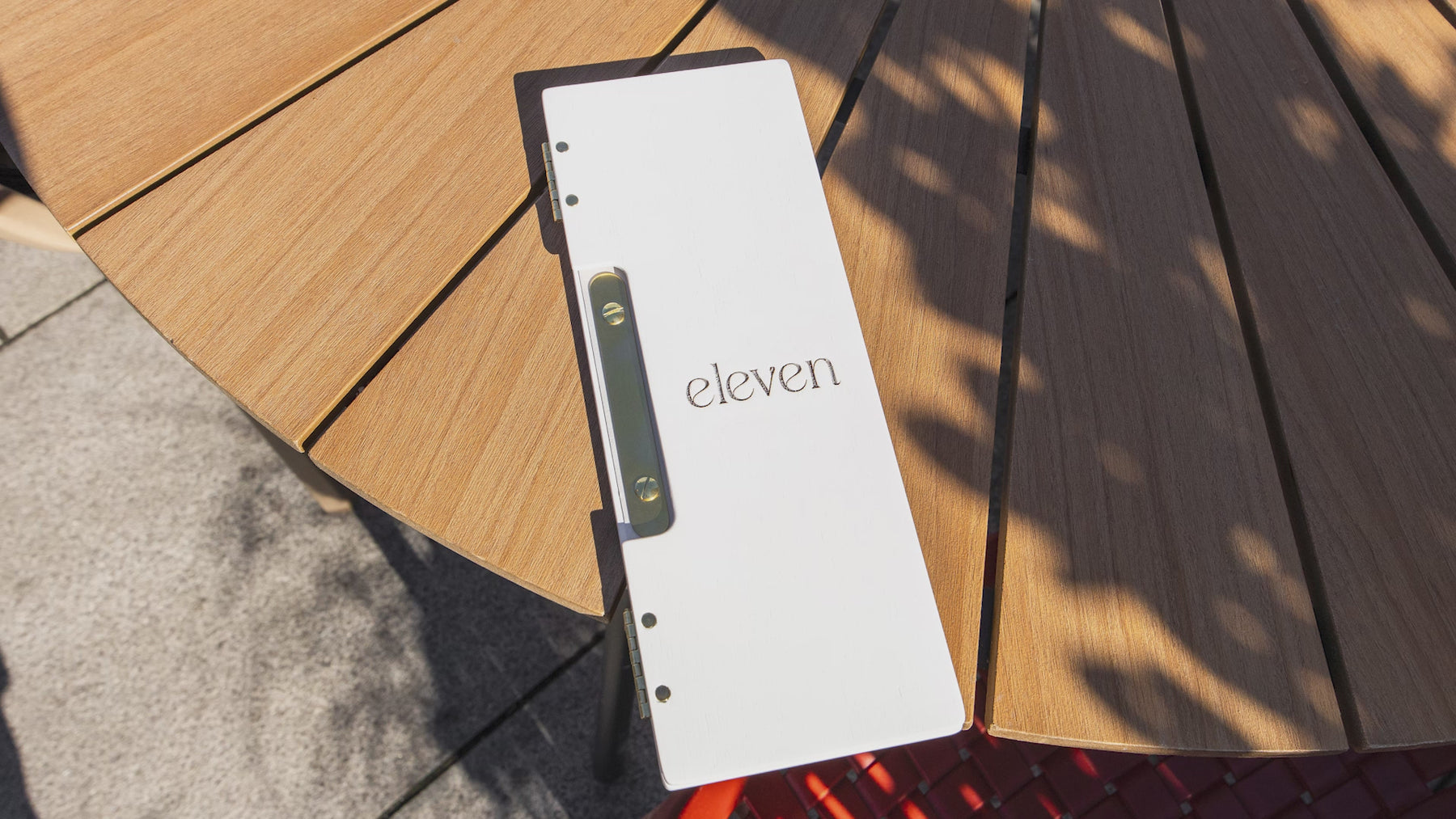 • The paper securely attaches to the menu holder with the help of a brass binder plank and screws