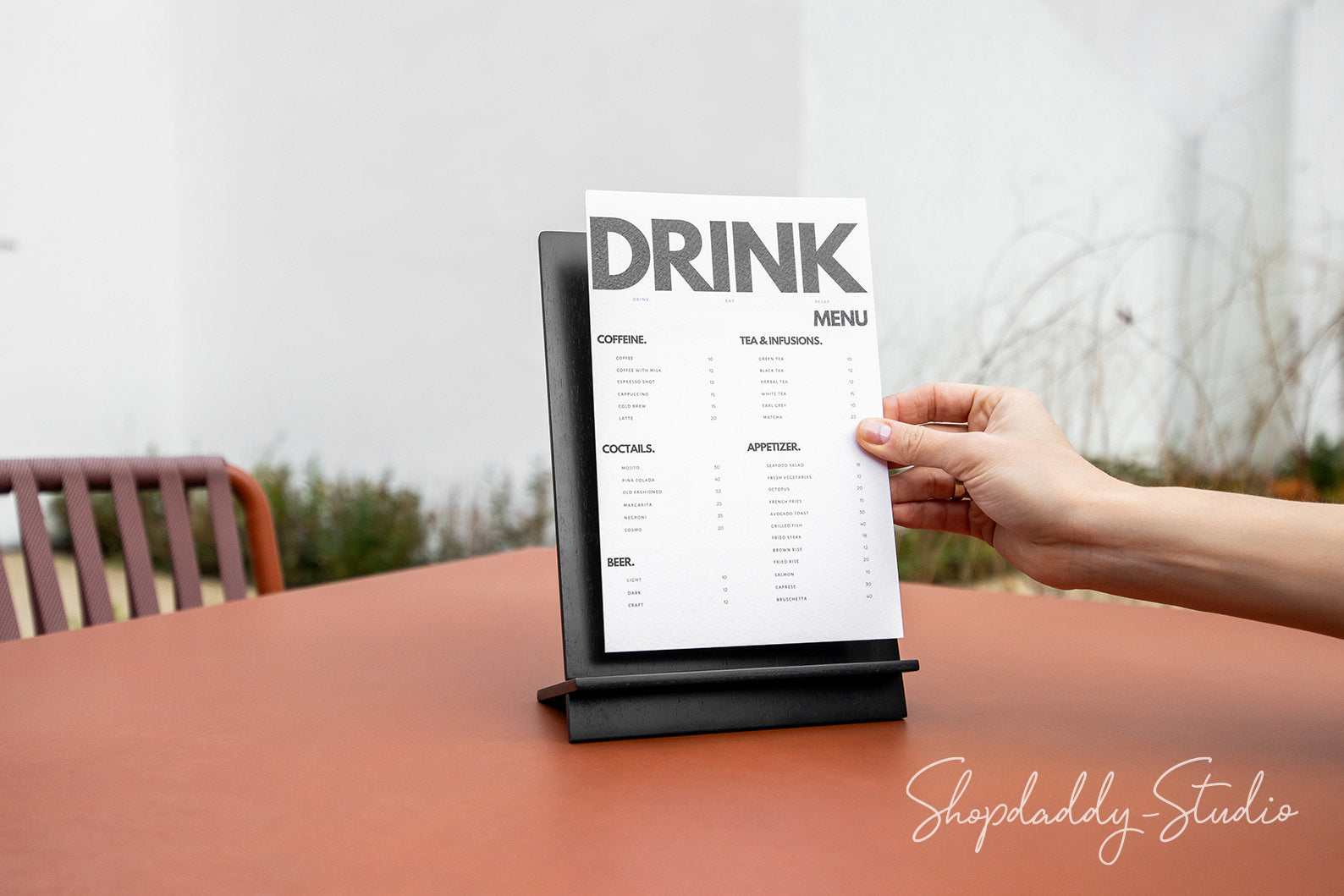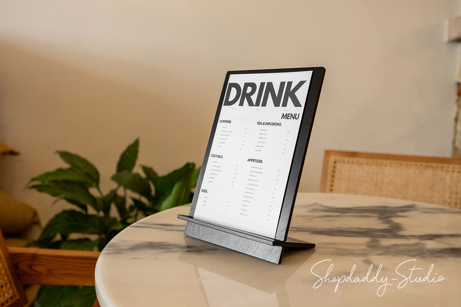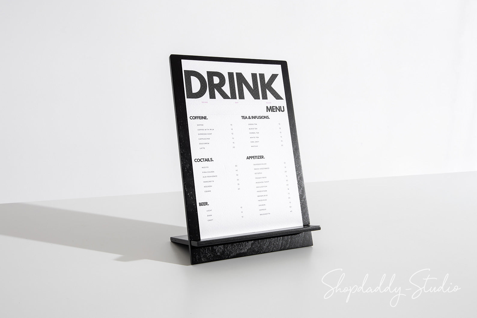 This wooden table stand offers a clean and practical way to display menus, table numbers, or short messages in restaurants, cafés, and bars. Made from durable birch plywood, it presents printed inserts at a comfortable reading angle without the need for clips or additional fasteners. The minimalist design blends seamlessly into modern hospitality interiors and keeps tabletops uncluttered—ideal for daily menu updates or promotional inserts.